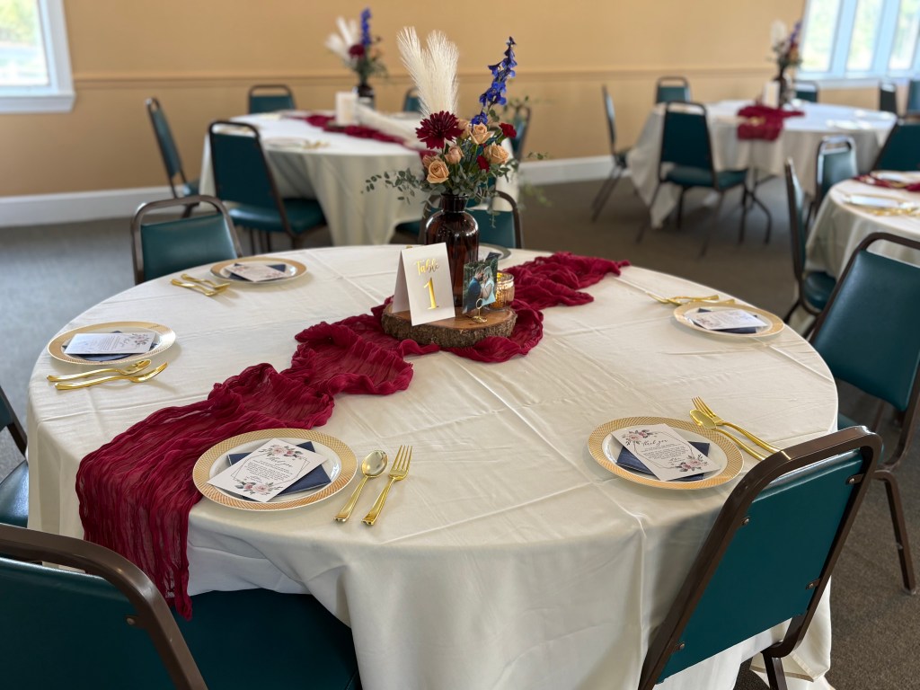 Our clubhouse showcases a large dining area that seats 200 (300 for cocktail events), a ballroom with ample room for dancing as well as musicians or DJs, and an additional room that can be set up for meetings or buffets. From the dining room, guests can walk out onto the upstairs covered porch which overlooks the 18th green. Wi-Fi is available throughout the building.